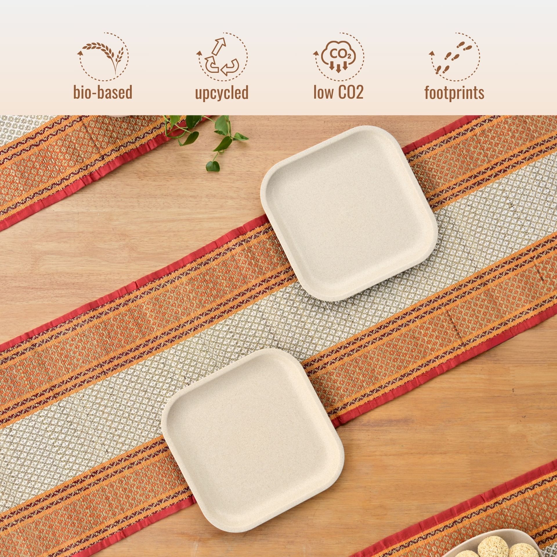 Plates crafted from bio composites offers a sustainable alternative to traditional plastic, paper or ceramic counterparts.